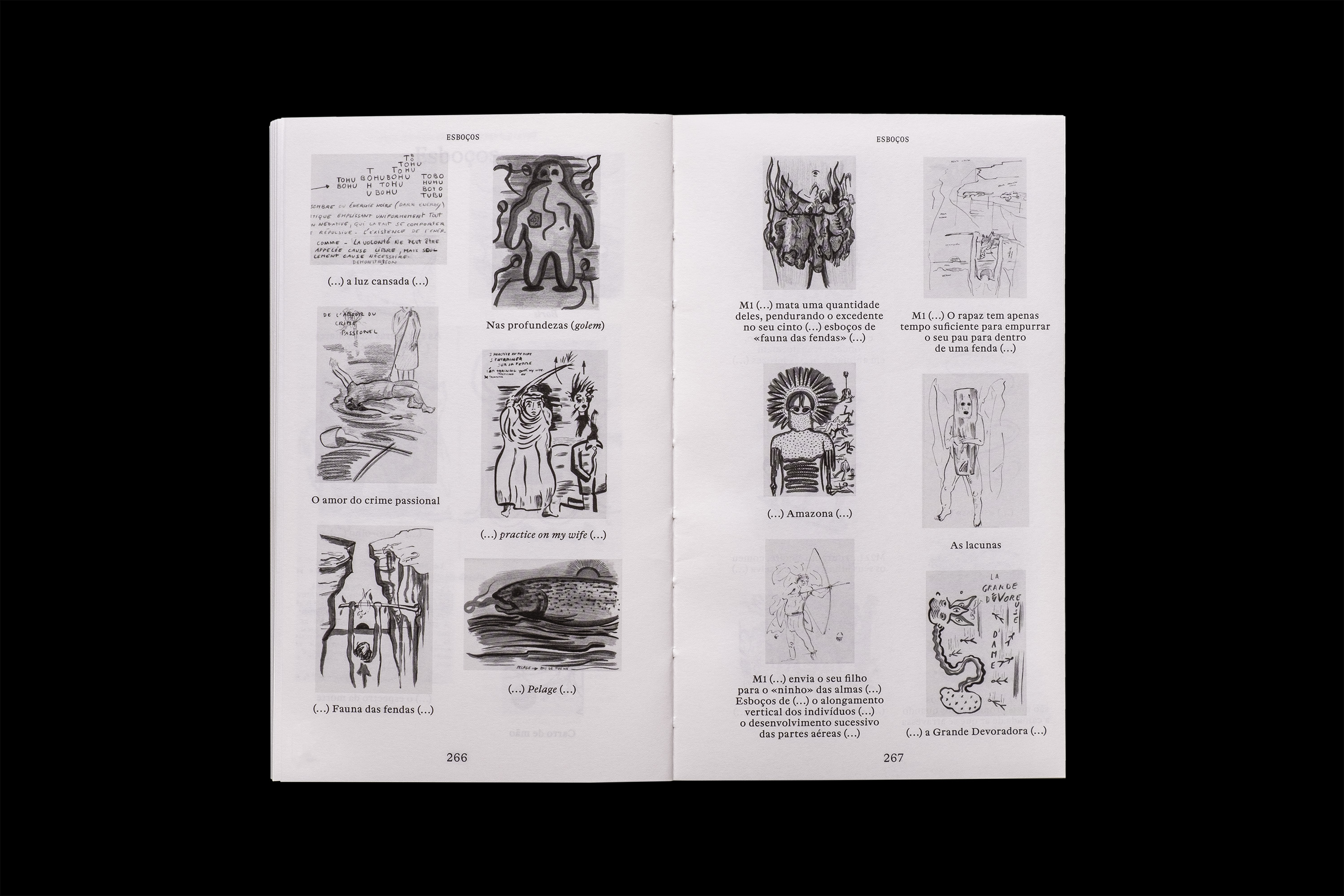 «Falemos agora do livro (…) O livro é, e não é, um catálogo da exposição. Mattia Denisse trabalha sempre a imagem e o texto, joga com as palavras, a sua construção e a sua sintaxe, como joga com as formas visuais. Combina o português e o francês numa nova língua que deve, e muito, à anti-arte dadaísta, a Alfred Jarry e tantos outros, que quiseram, de facto, partir do zero, também no texto.»