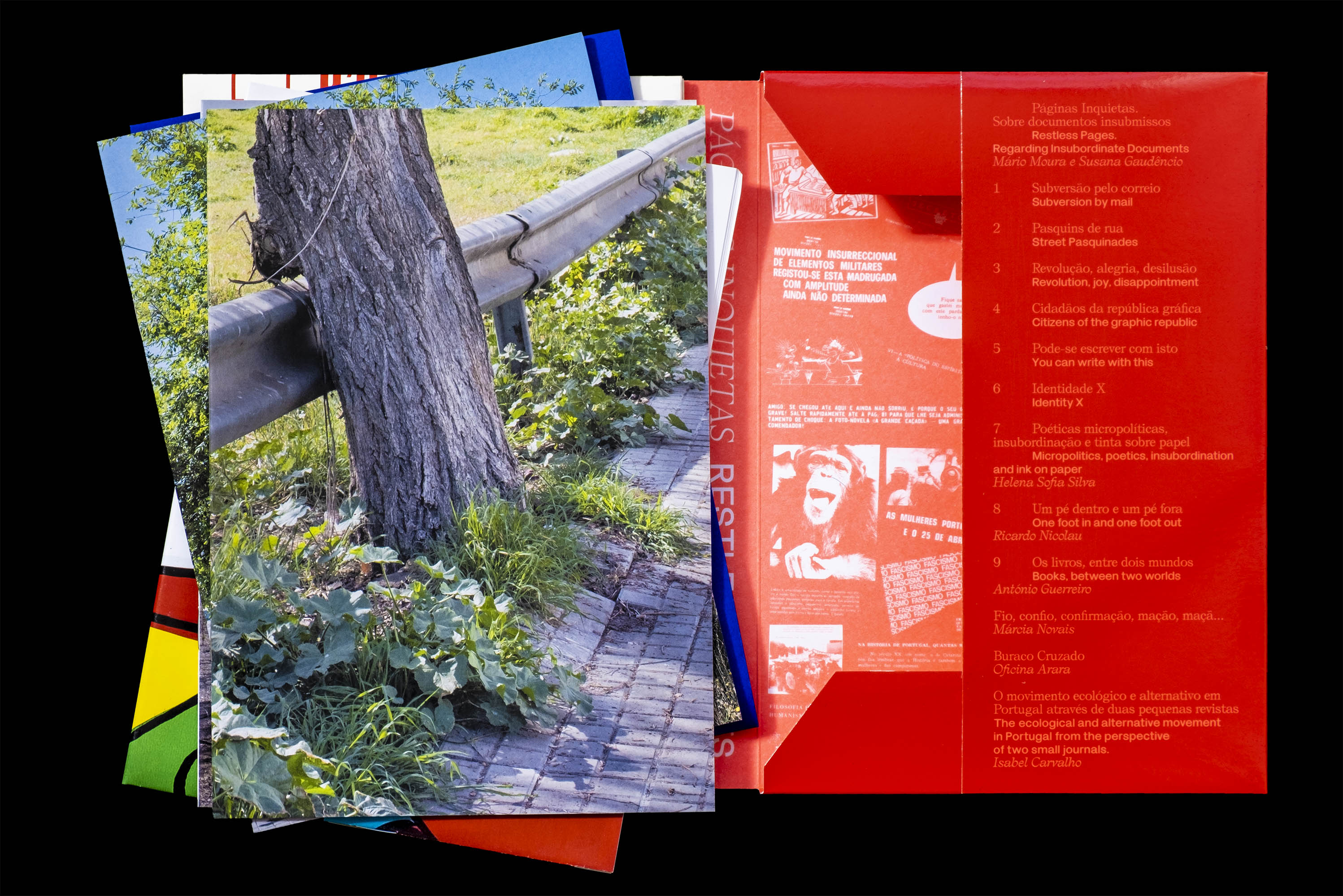 Para enfatizar o carácter lacunar do arquivo e inscrevê-lo no presente, convidou-se a artista Isabel Carvalho, a designer Márcia Novais e o colectivo de designers e artistas Oficina Arara, para reler este acervo, e a partir de uma dimensão artística/poética/política produzirem três novos objectos insubmissos. Páginas Inquietas inclui também três ensaios do curador e editor Ricardo Nicolau, do crítico literário e ensaísta António Guerreiro, e da professora e investigadora Helena Sofia Silva. A artista Catarina Botelho produziu uma série de nove imagens – Resistência vegetal –, uma por cada ensaio e núcleo temático, que assim cria um sistema de ressonâncias com os livros, publicações e documentos insubmissos.